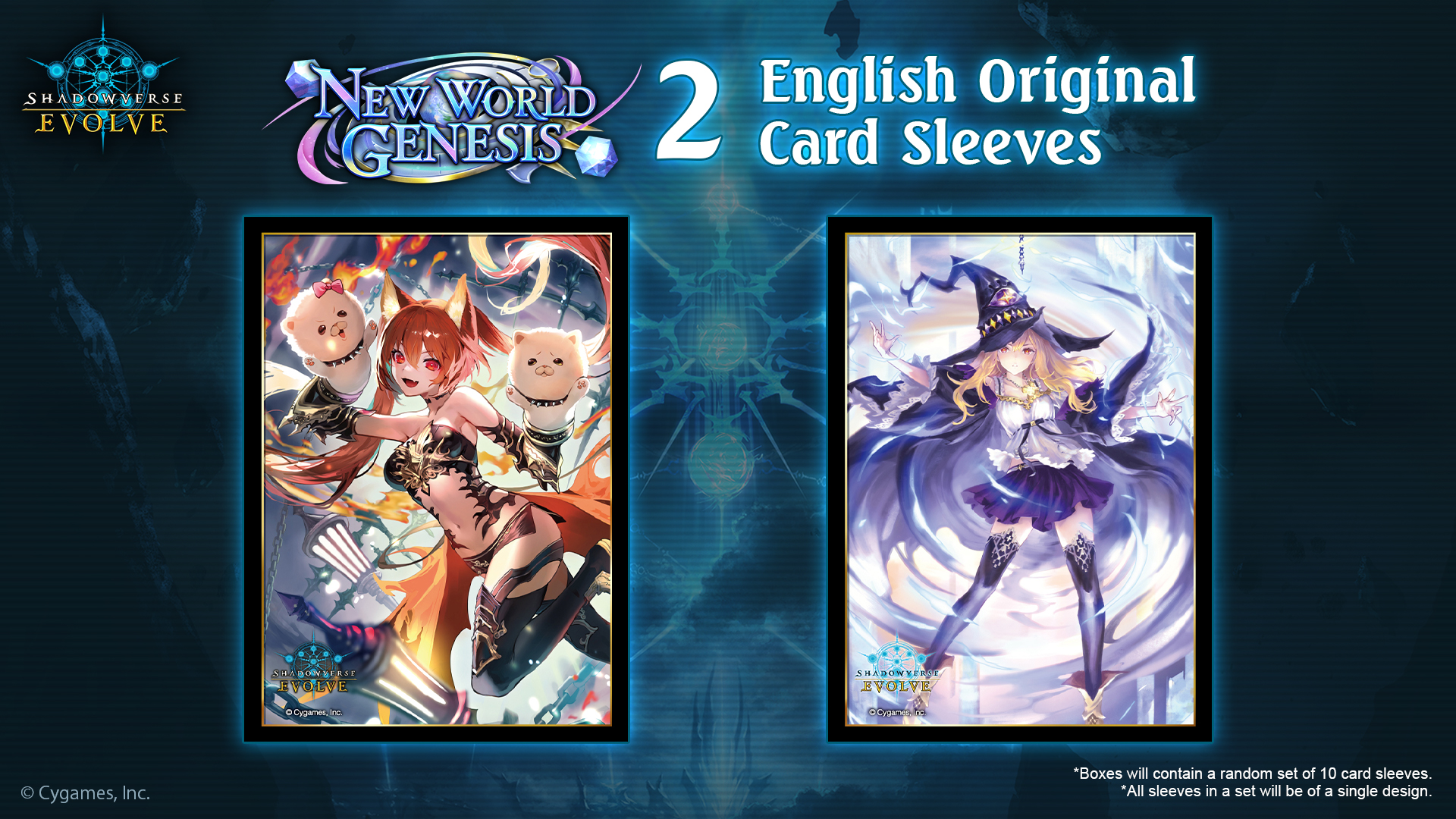 Each booster box of New World Genesis will include exclusive card sleeves with artworks of either Daria or Cerberus.