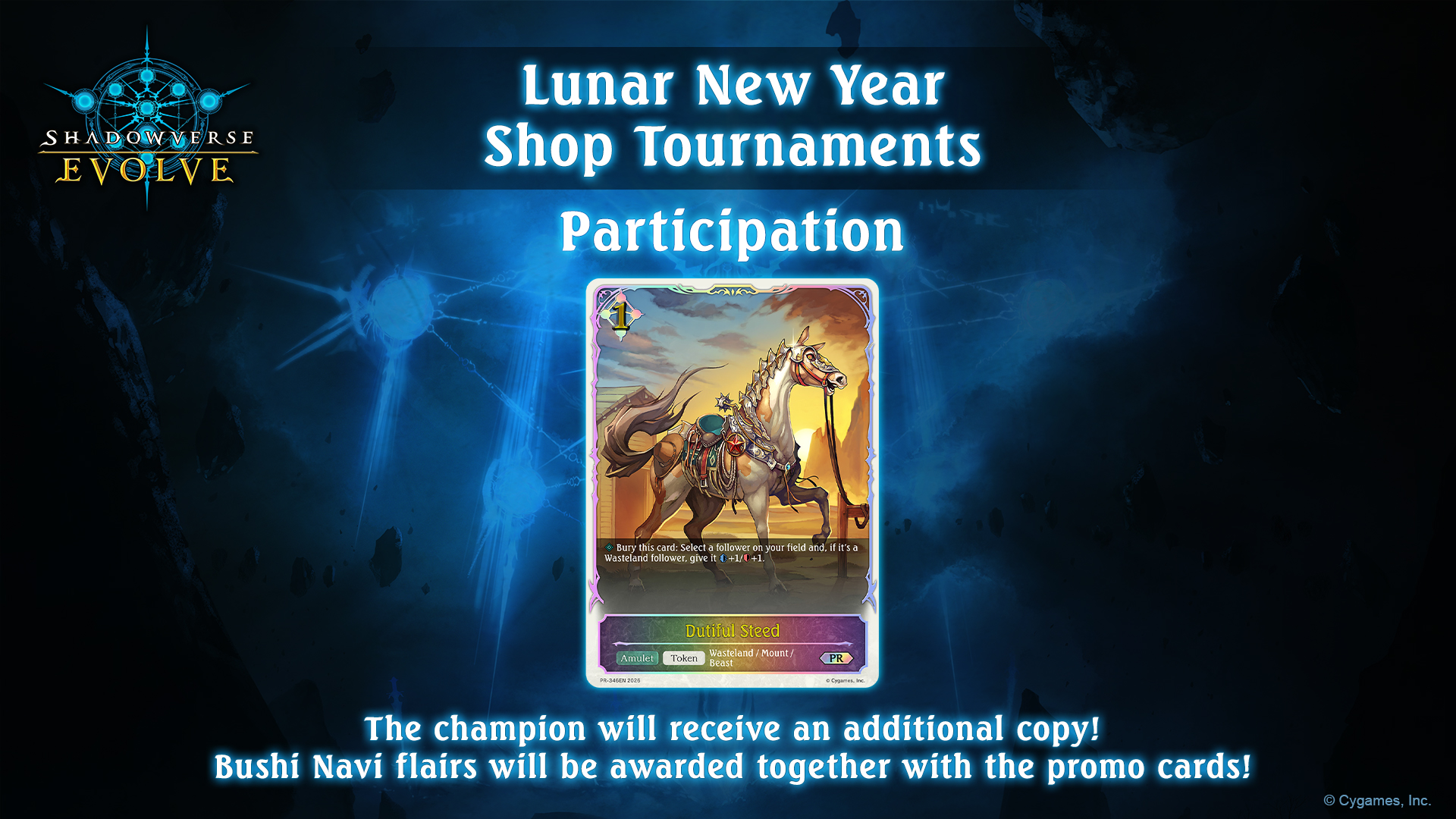 Gallop into a prosperous year with an exclusive promo version of the Dutiful Steed token card for all participants. The champion will receive an additional copy!