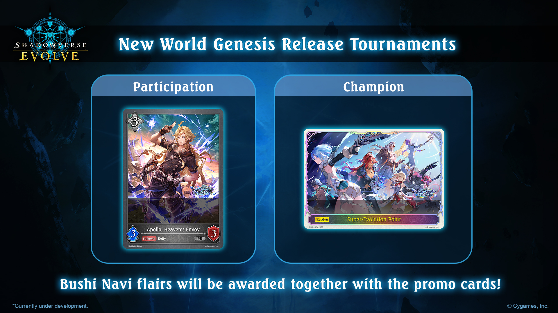 To celebrate the release of New World Genesis, official Bushiroad stores will be holding release tournaments in the Sealed format from March 27 to April 27, 2026.