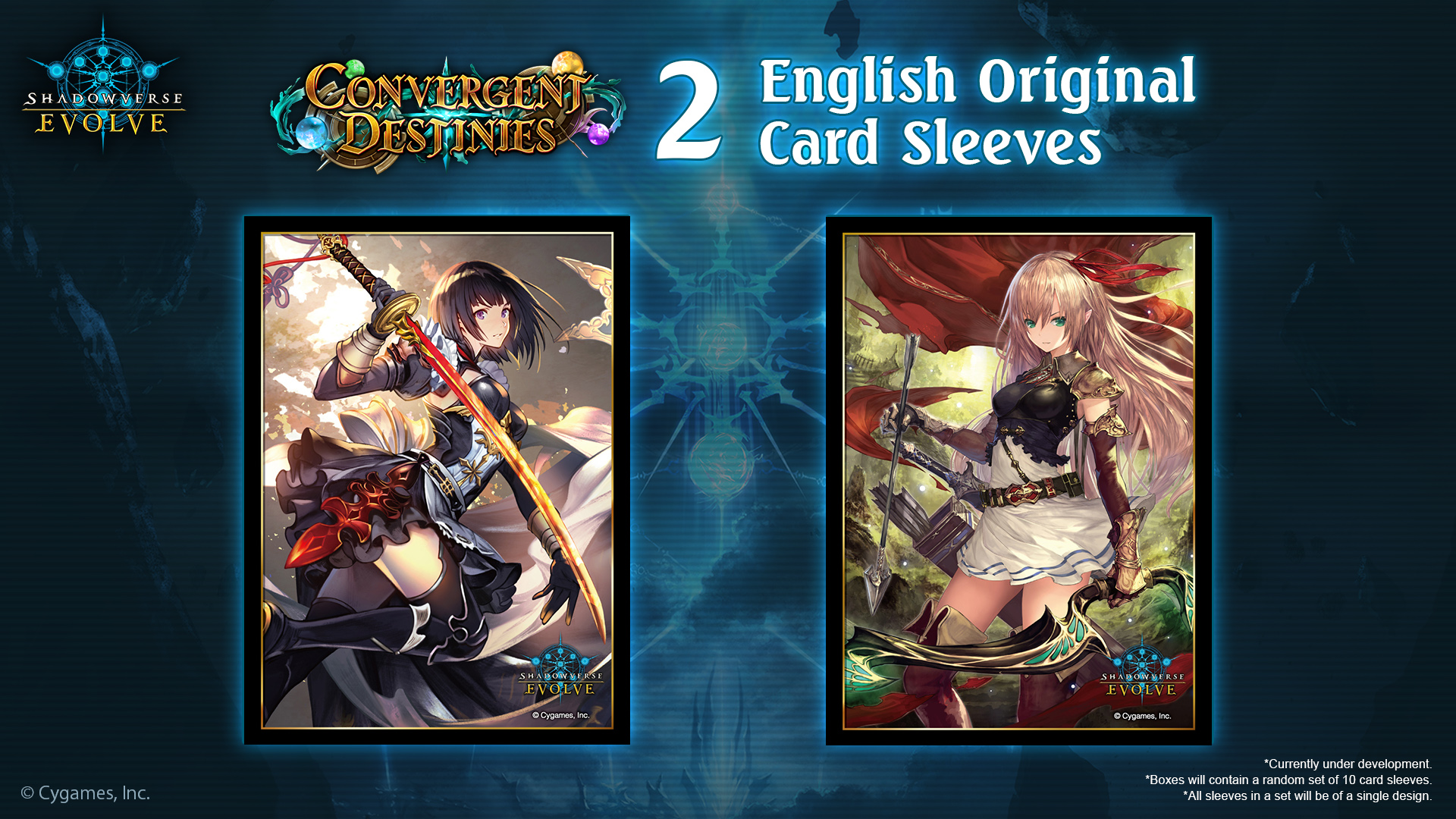 Each box of Convergent Destinies also includes a pack of 10 sleeves featuring either Arisa or Erika from this set!