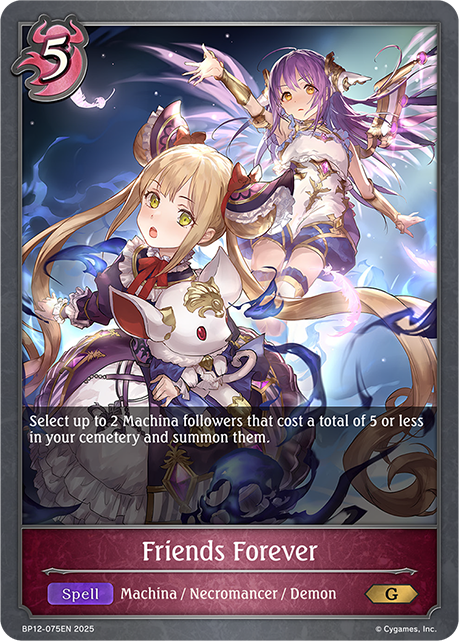 Unlock the full board-building potential of the deck with Neun, Daybreak Vampire and Friends Forever! Garnet Waltz also enables the conditions needed to evolve Mono, Garnet Rebel, allowing you to easily chain Mono every turn to push your opponent to the edge!