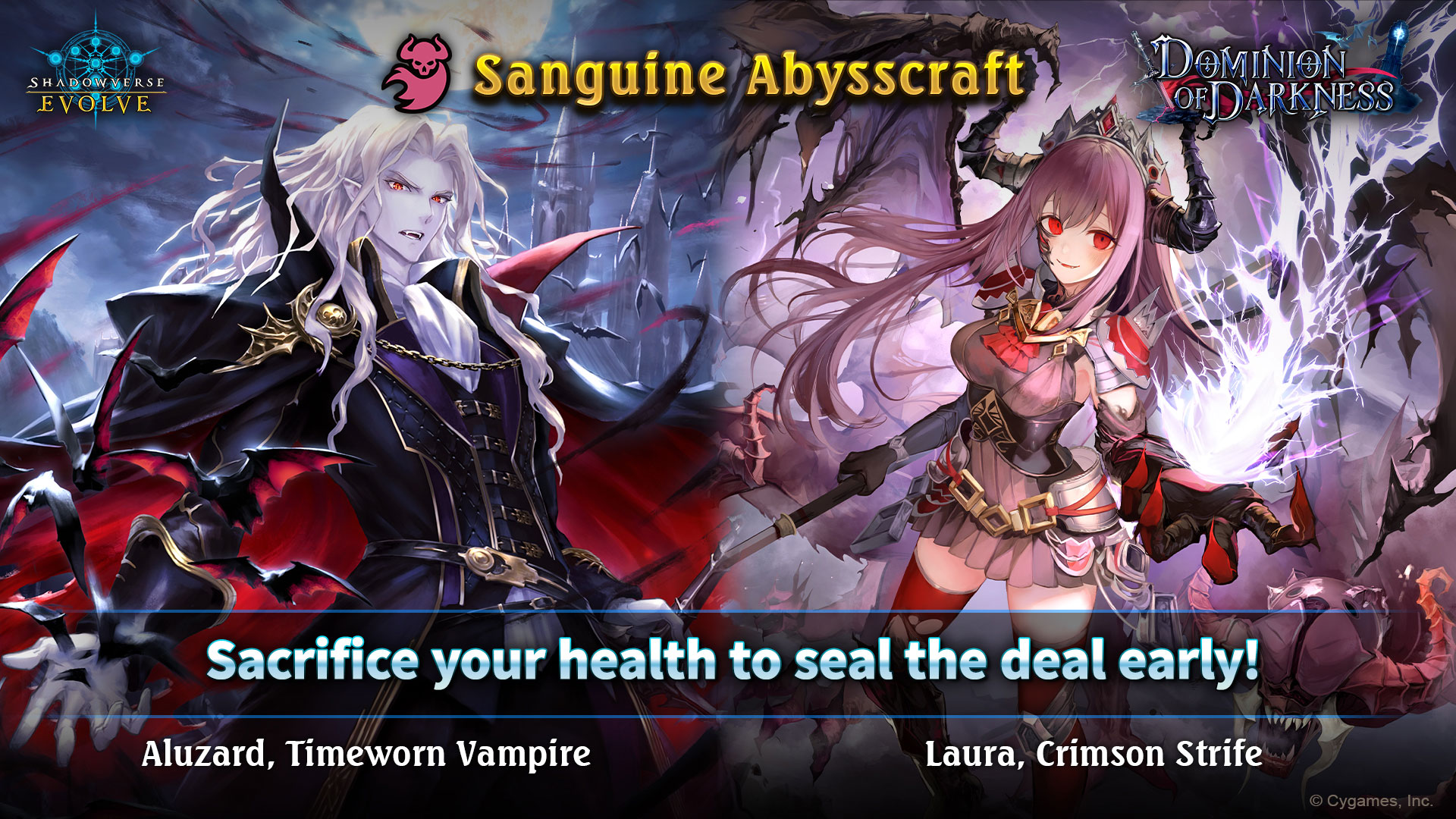 Play Laura, Crimson Strife or Valnareik, Omen of Lust! Deplete your leader's defense with Blood Arts and Sanguine Necklace from the early game, and aim for victory with a succession of Storm attacks!