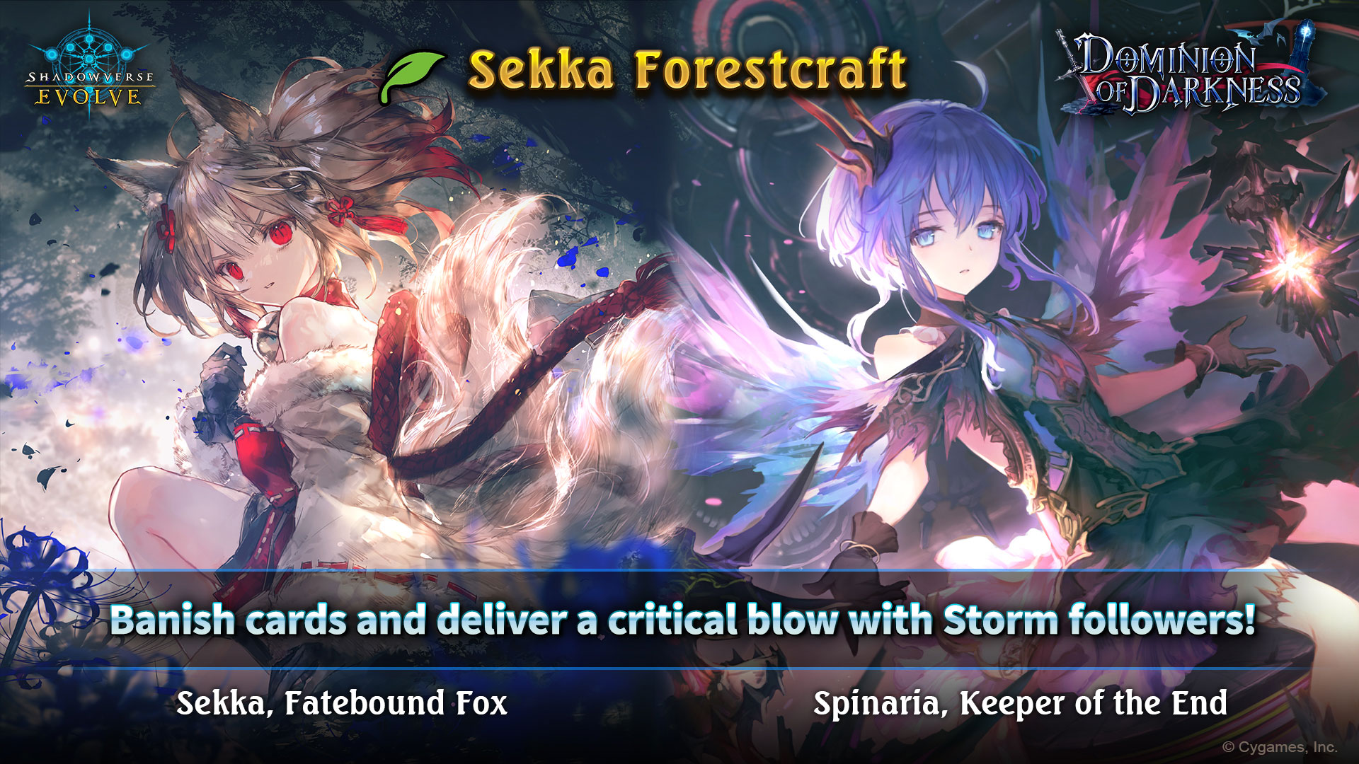Banish multiple cards by tapping on the ability of Spinaria, Keeper of the End and Sekka, Fatebound Fox! Once you've banished more than 9 cards, use the Fanfare ability of Sekka, Ninefold Blaze to add Resolve of the Nine-Tailed Fox to your hand and play it! Power up your Sekka, Ninefold Blaze and grant it Storm! Close out the game with a powerful blow!